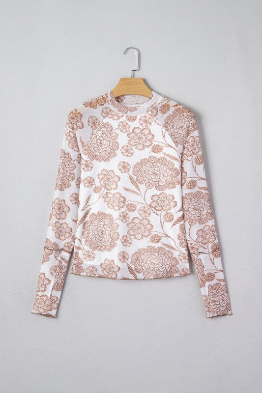 Floral Mesh Mock Neck Long Sleeve Top