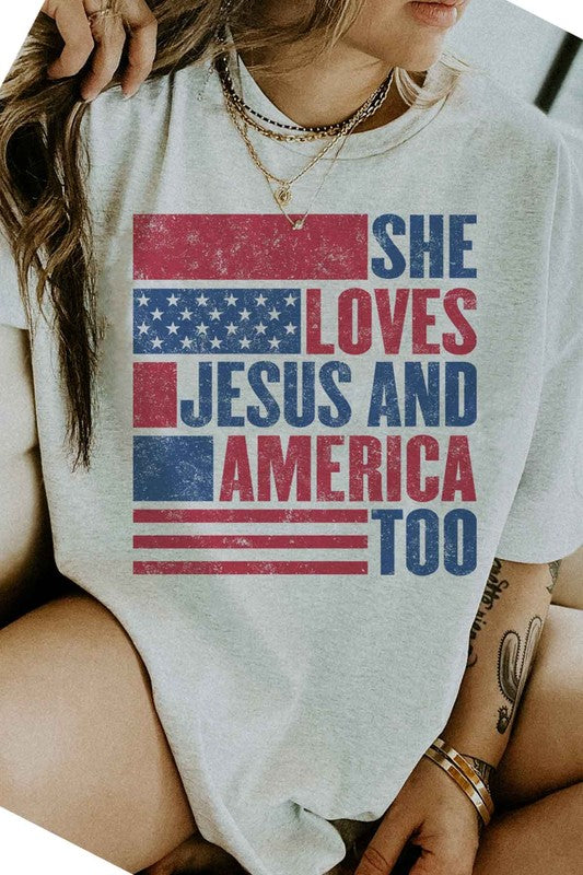 LOVES JESUS AND AMERICA GRAPHIC TEE / T-SHIRT