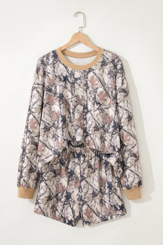 Woodland Camo Long Sleeve Top & Short Set