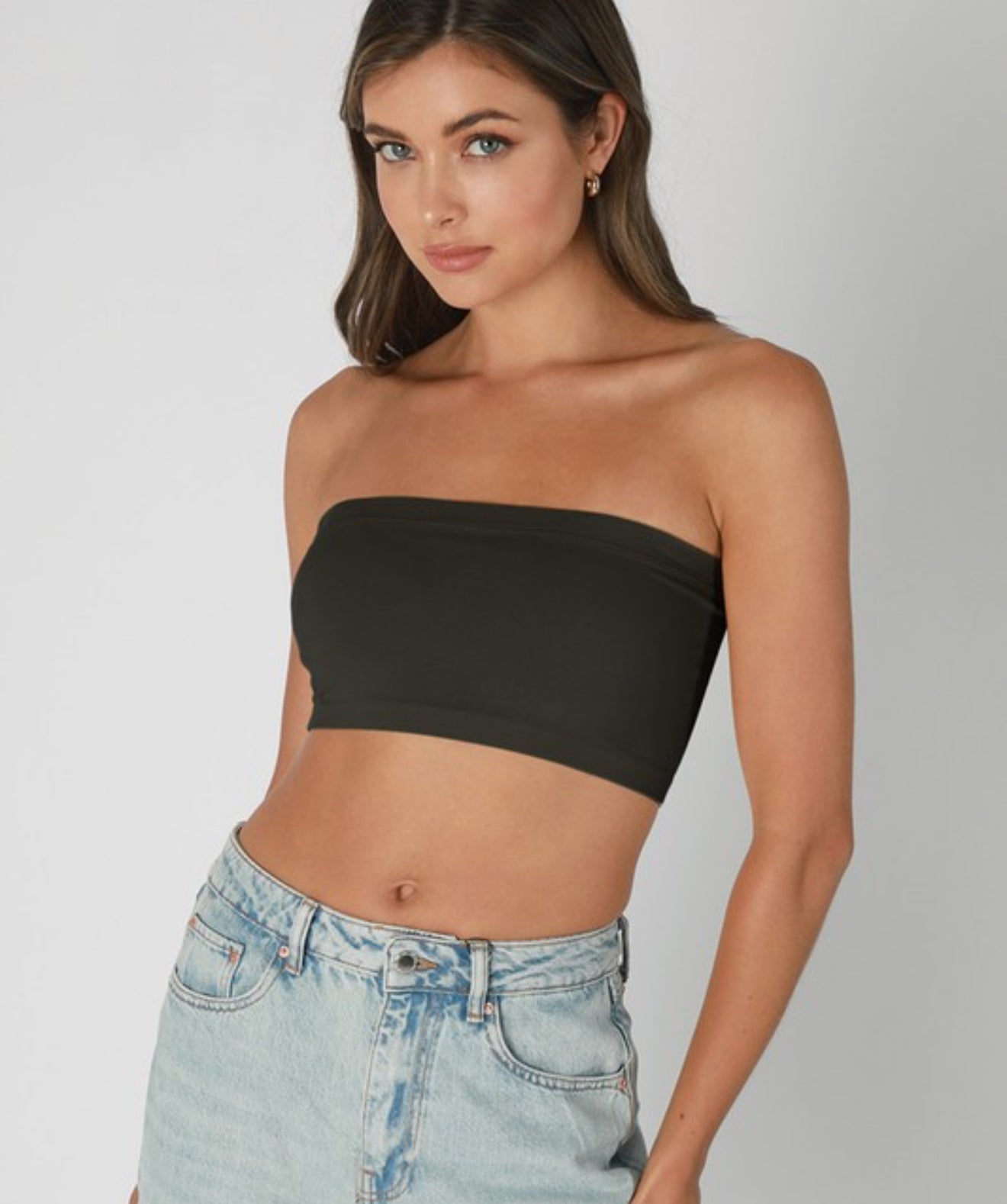 Simple bandeau tops in black and white with a stretchy, seamless fit. Perfect for layering or wearing solo on warm days.