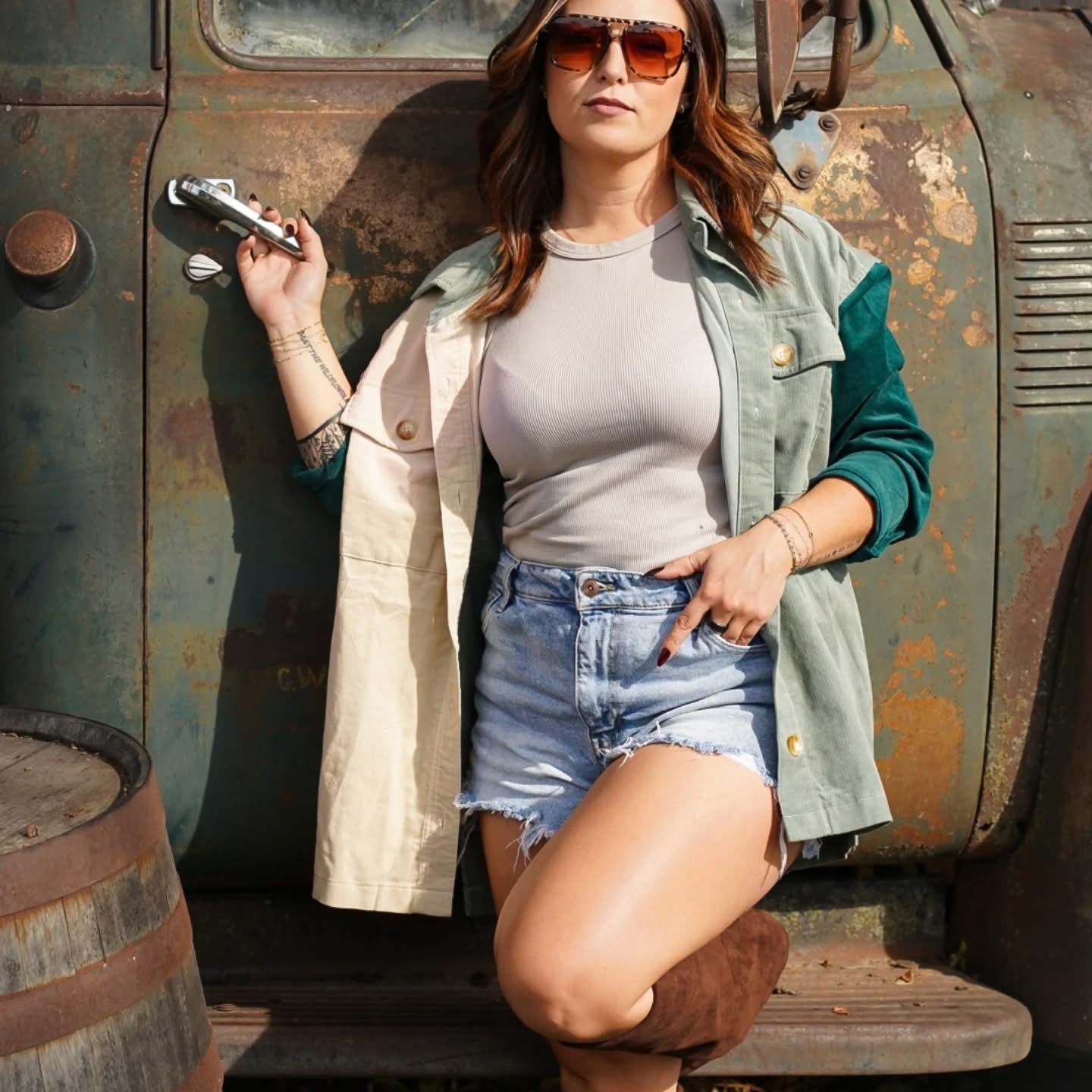 A fall staple with a little edge. This colorblock corduroy shacket blends soft neutrals with deep green sleeves for the perfect mix of cozy and cool. Style it open over a turtleneck or buttoned up with denim — either way, it’s a whole vibe.